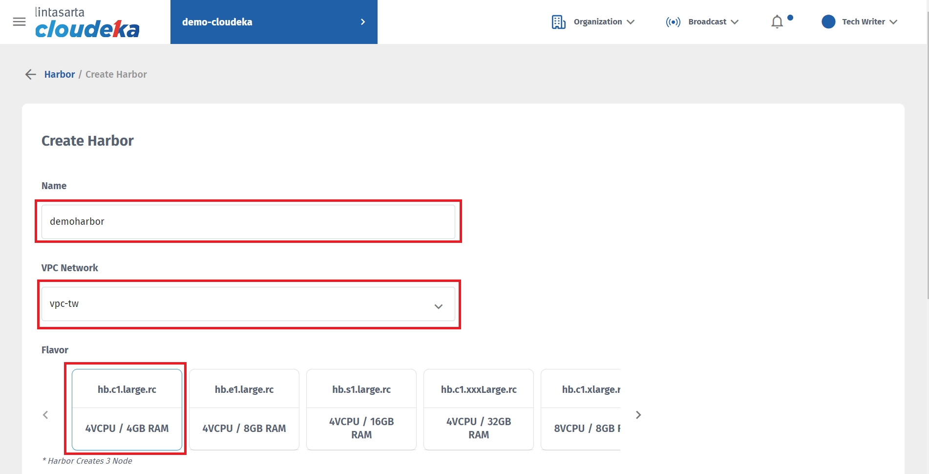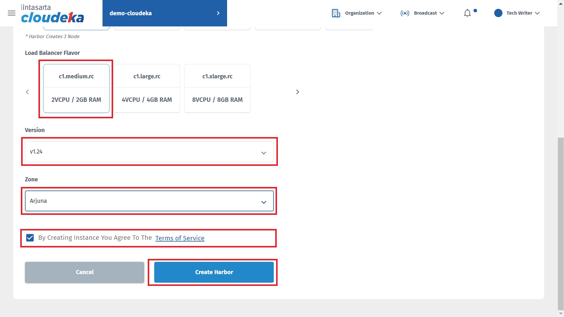- Fill in all available columns on the Create Harbor page and check Term of Service and click the Create Harbor button.