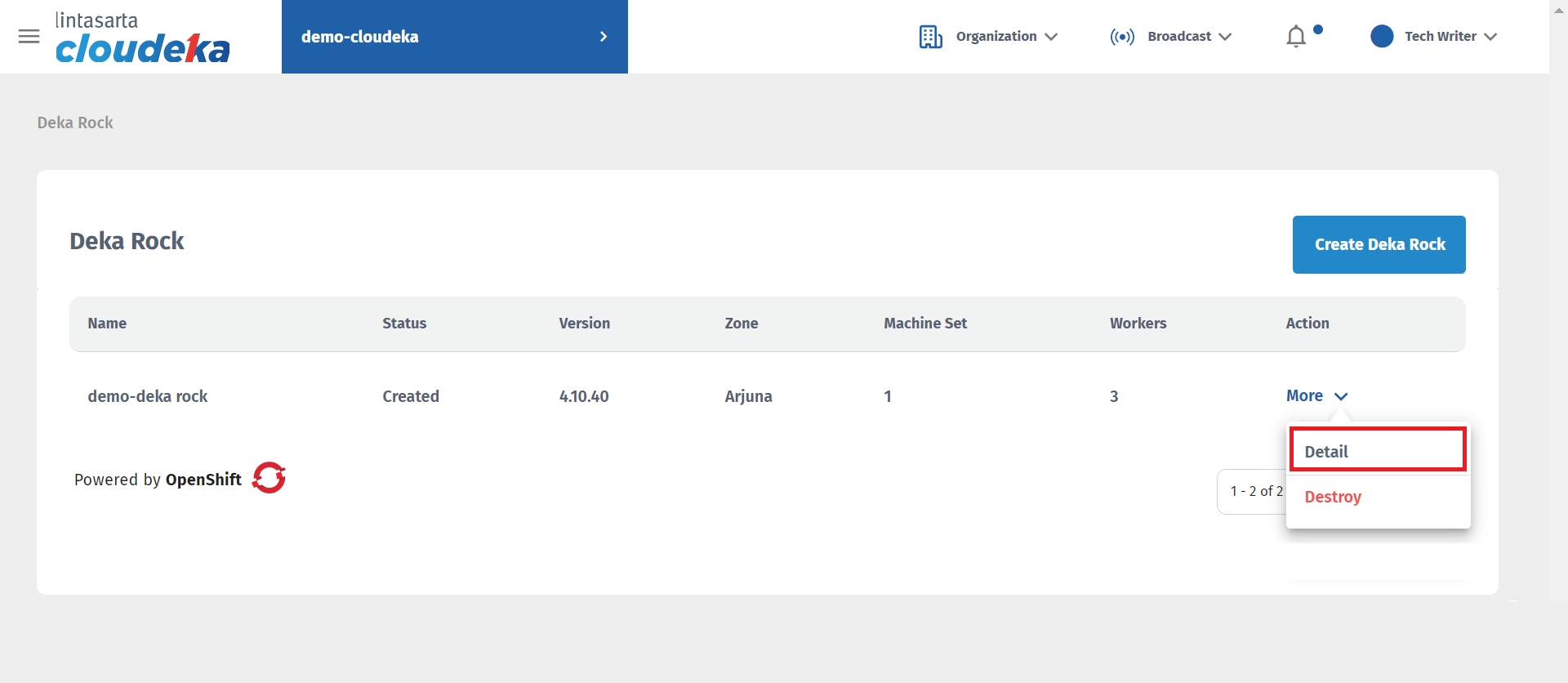 - On the Cloudeka portal service page, select Platform, then click the Deka ROCK menu.