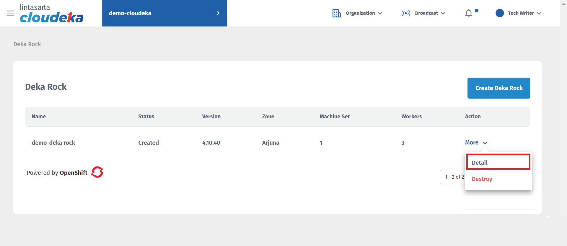 On the Cloudeka portal service page, select Platform, then click the Deka ROCK menu.