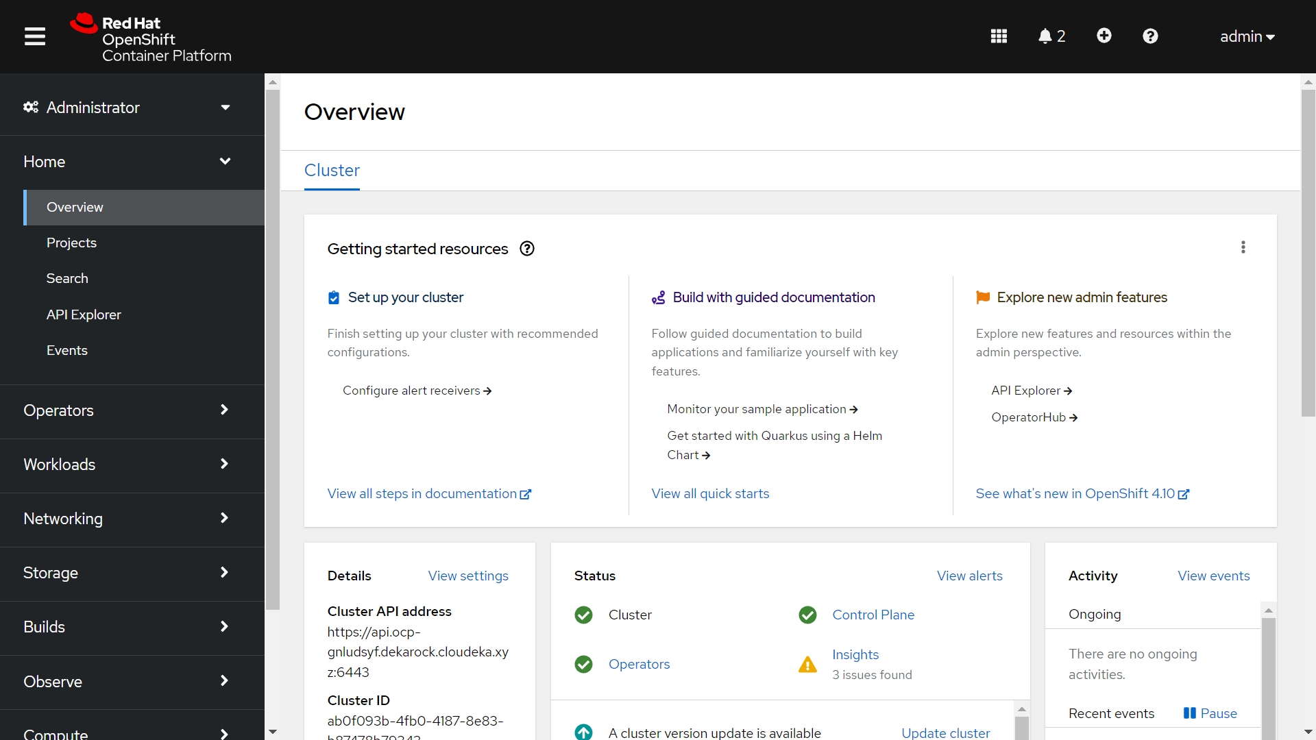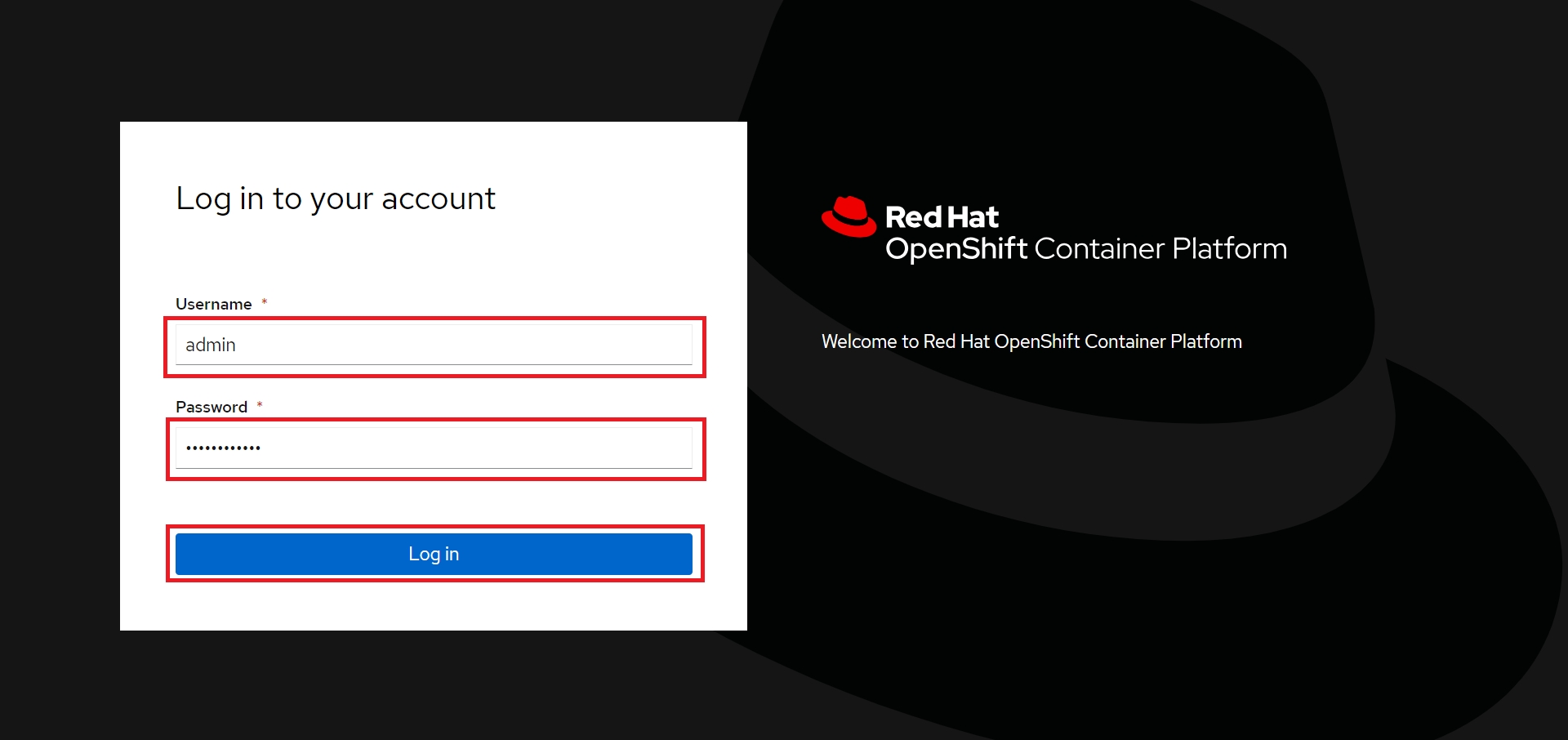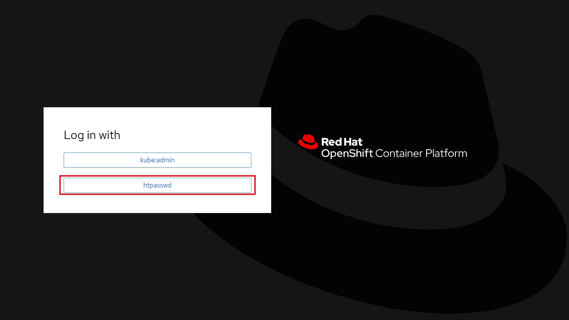 - On the Overview section click the URL address available on the Console. You are directed to Openshift click the htpasswd button.