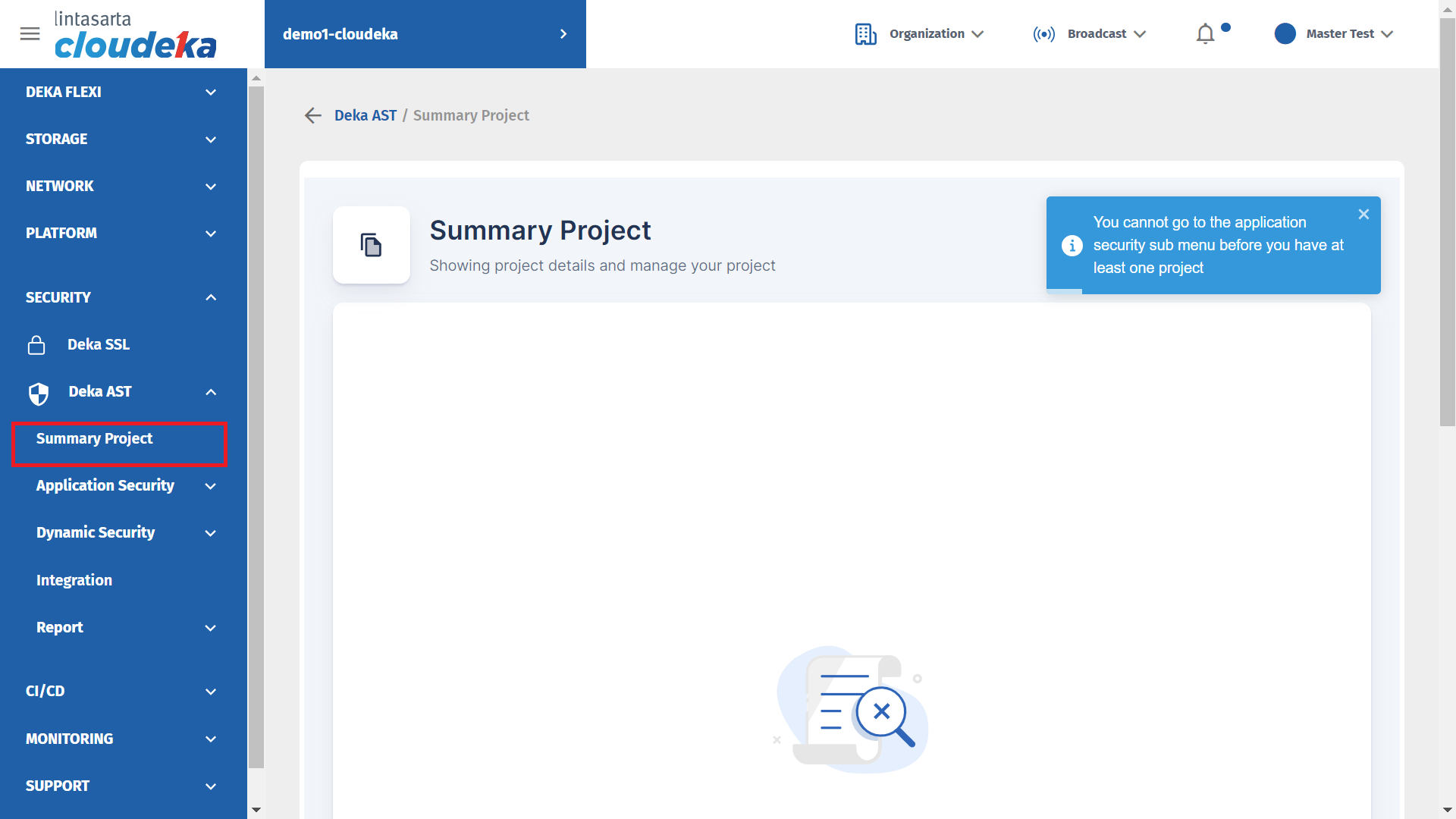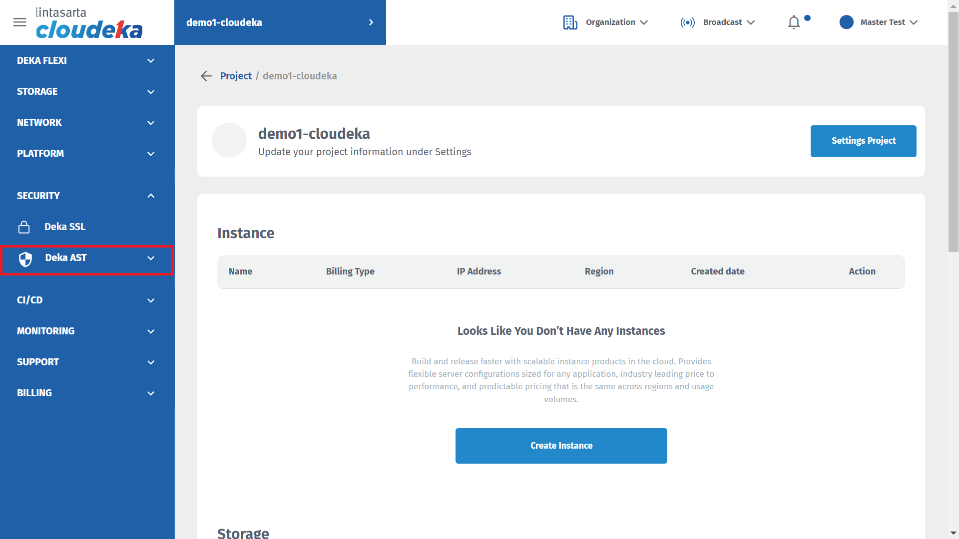 On the Cloudeka portal service page, select Deka AST.