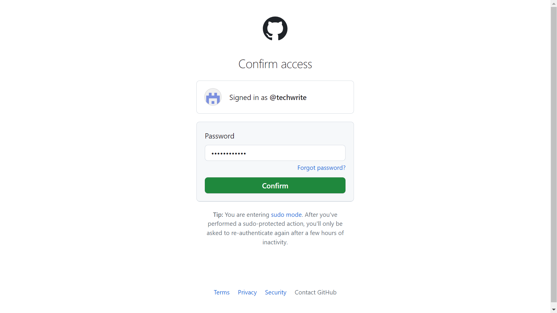 Enter the password your Gitbub account uses.