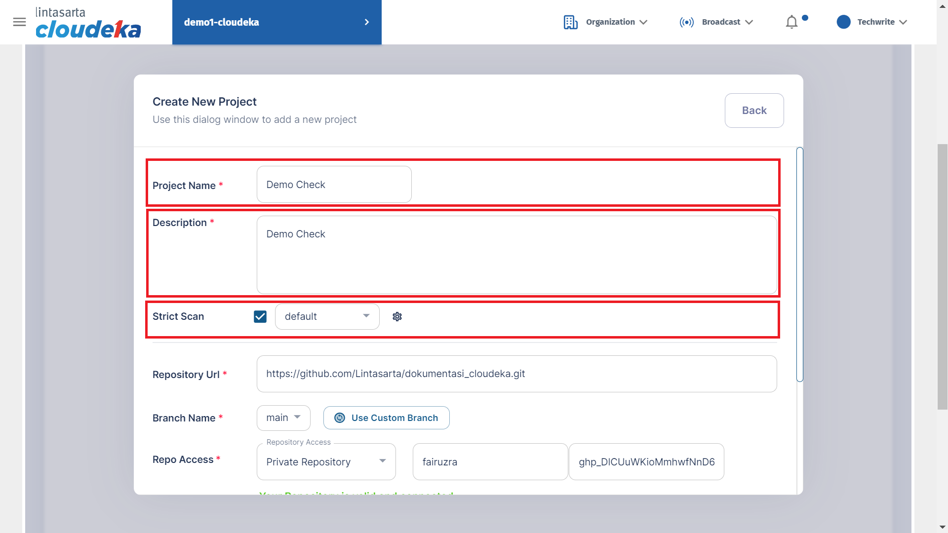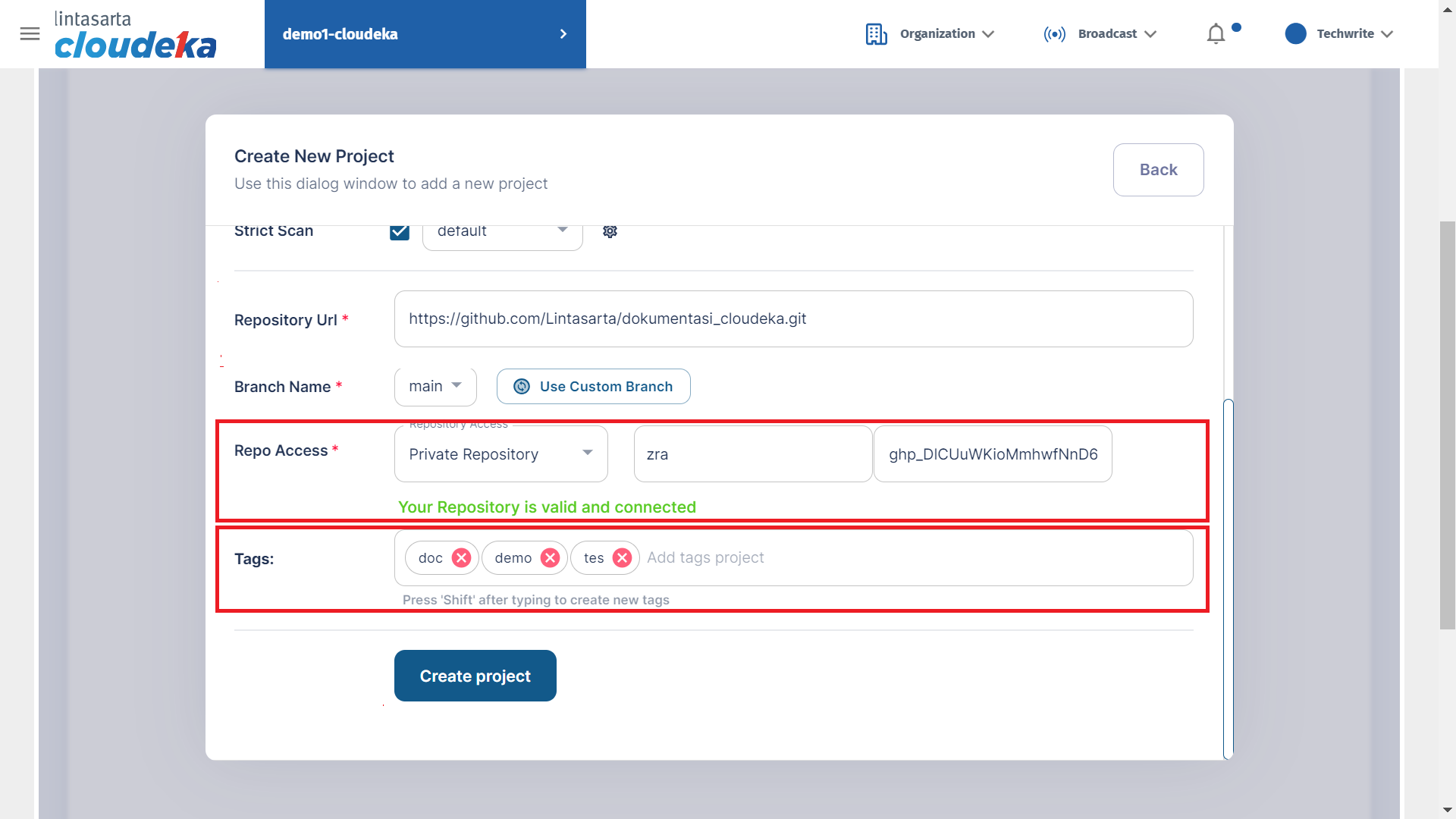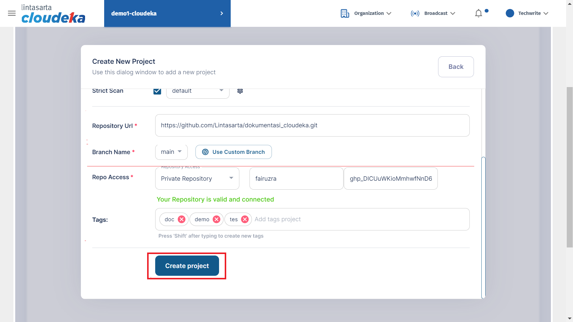 Create Project - Repository Access
