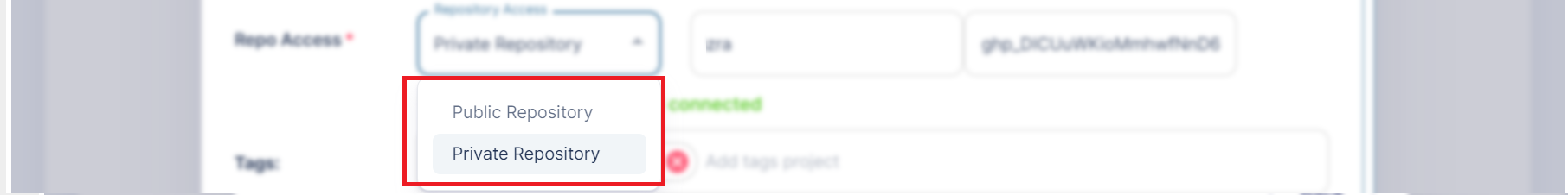 In Repo Access there are two options: Public Repository and Private Repository.