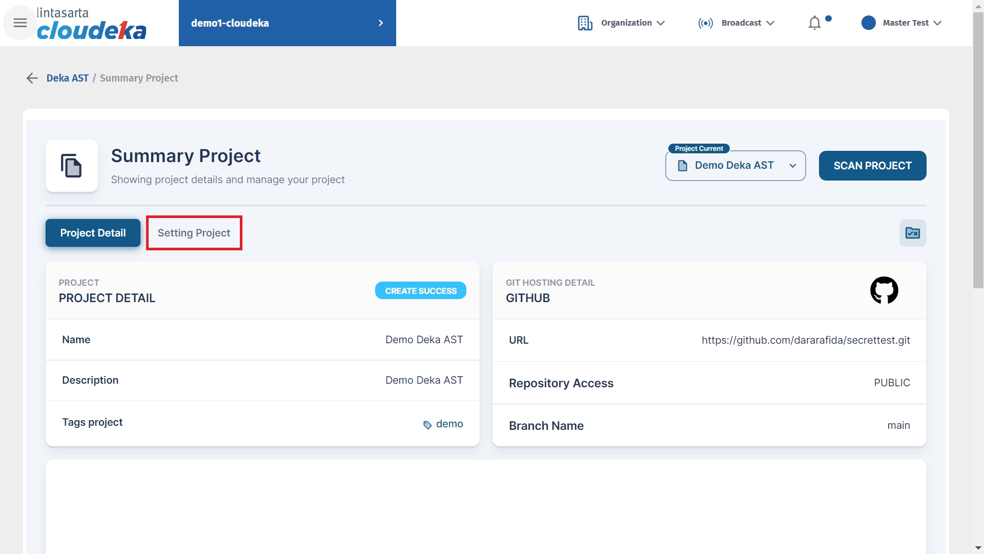 - After successfully log in to the Cloudeka portal service. On the AST Deka menu select Summary Project.