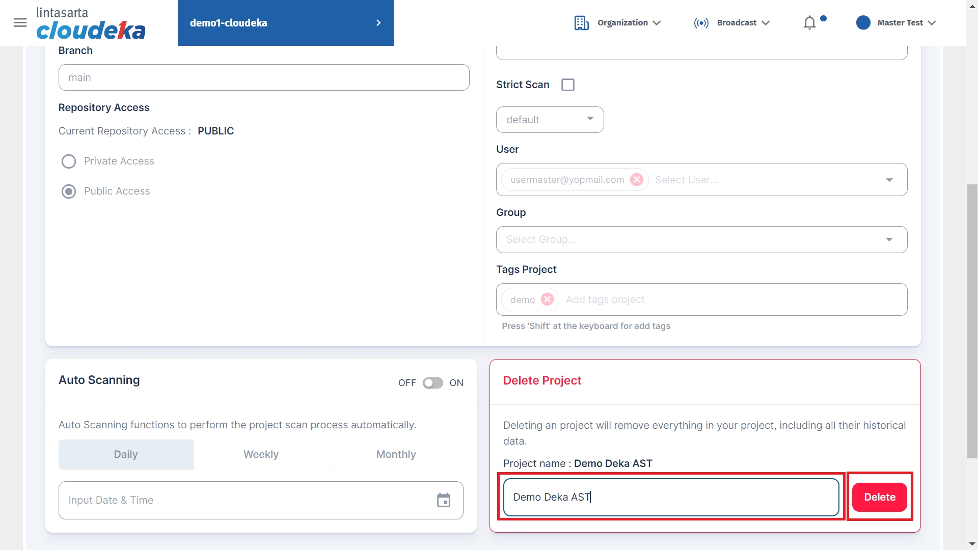 - In Delete Project, enter the project name in the Delete project confirmation field.
