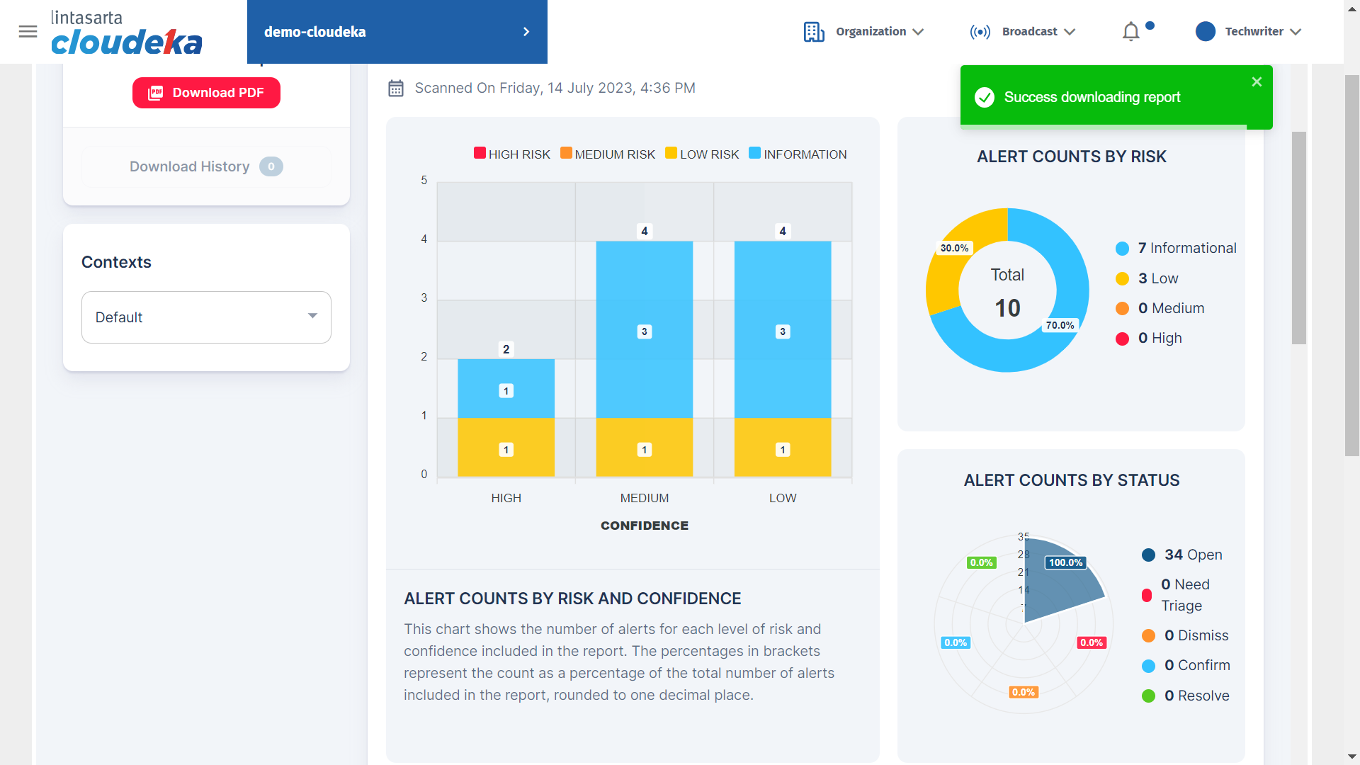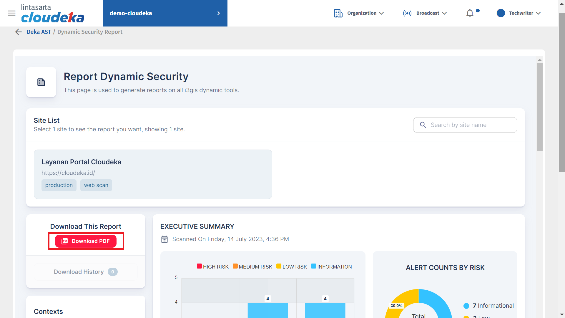 To view dynamic security reports, make sure you have created the site and scanned the destination site. Here are the steps to download a dynamic security report: