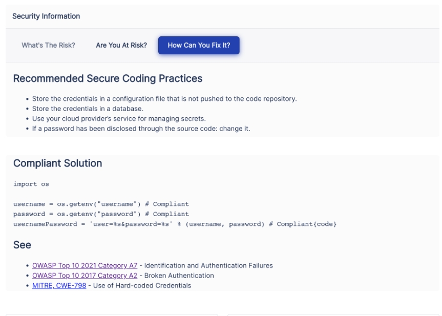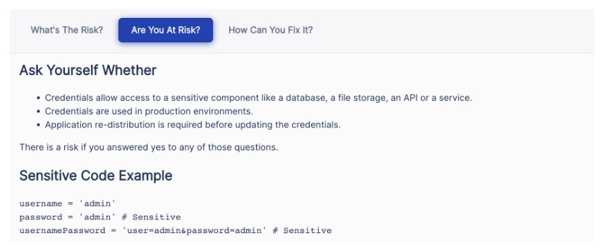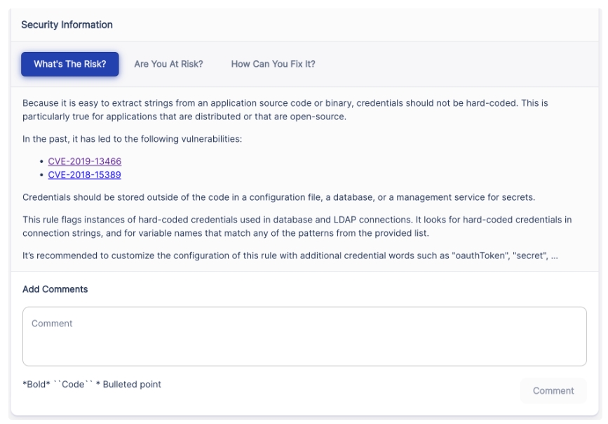 a. "What's The Risk?" displays the risks that attack the security of the project.