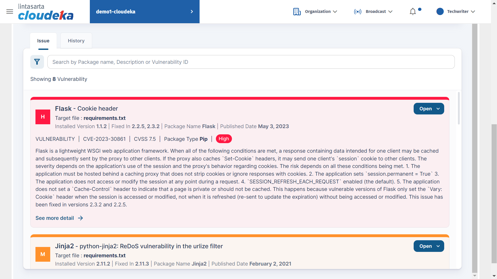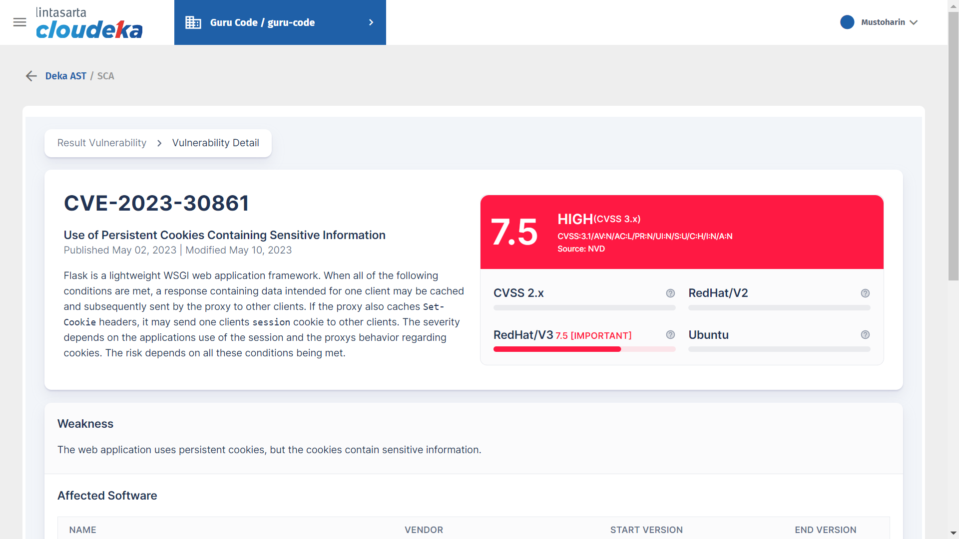 <figure><img src="https://putri.box.cloudeka.id/cloudeka-assets/static/images/19dekaast/9.3.png" alt=""><figcaption><p>Result Vulnerability - History - Vulnerability Detail</p></figcaption></figure>