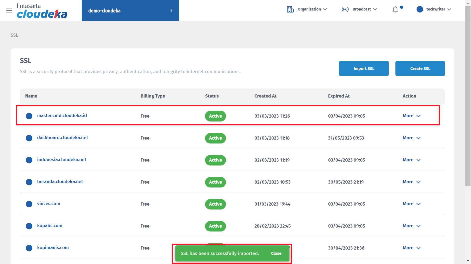 <figure><img src="https://putri.box.cloudeka.id/cloudeka-assets/static/images/11ssl/11.23%20success%20import%20ssl.png" alt=""><figcaption><p><em>Import SSL (d)</em></p></figcaption></figure>